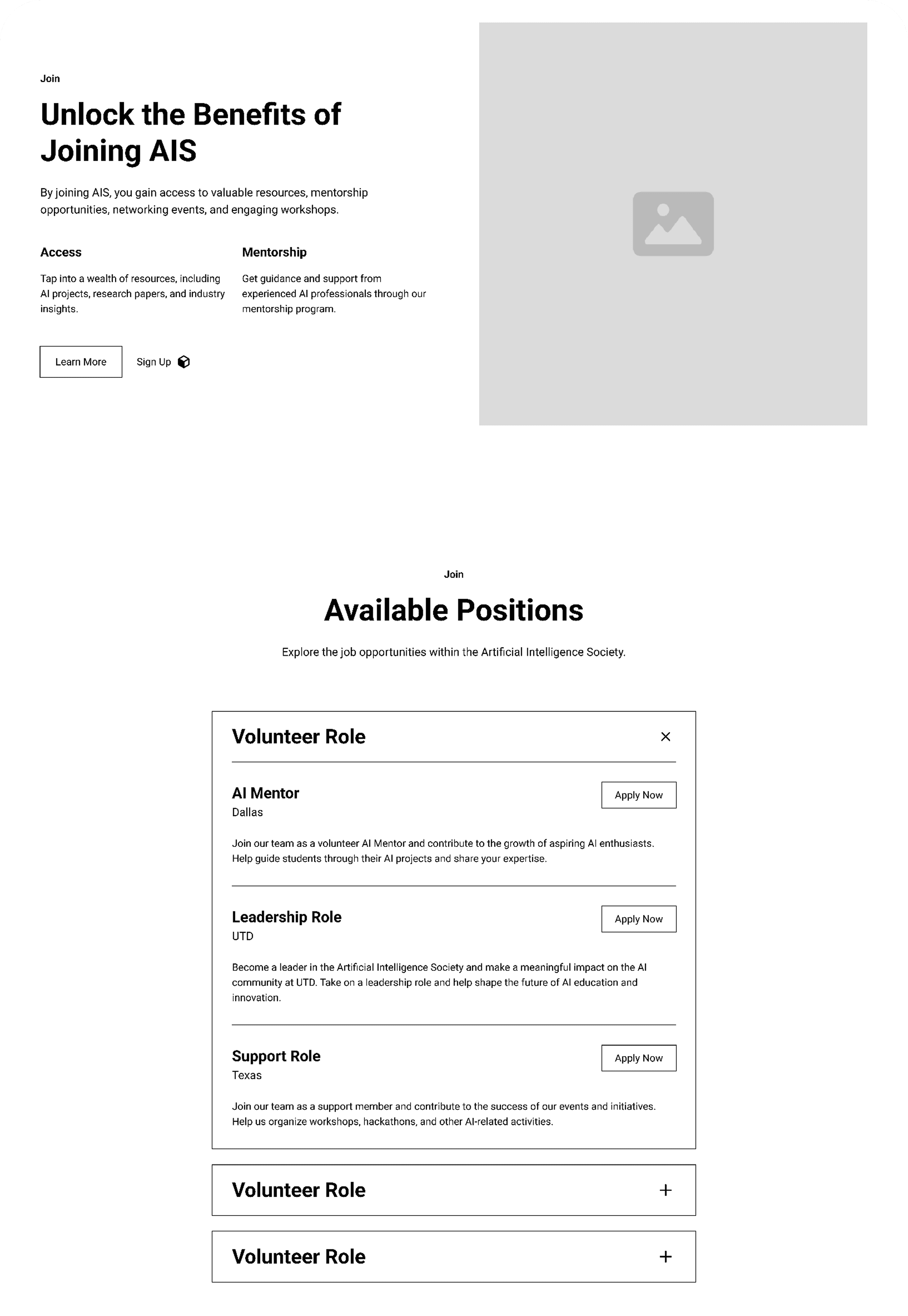 Variation B creates distinct pathways for each user type—making it clear whether you want to join as a general member, apply for mentorship, or become an officer. This eliminates confusion about "how to get involved."